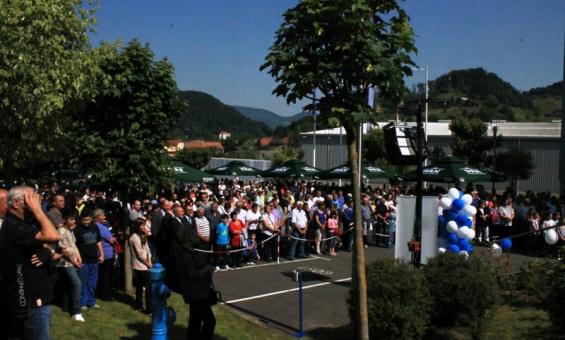 Više stotina sadašnjih i umirovljenih radnika, članovi njihovih obitelji te brojni drugi gosti okupili su se u Humu na Sutli gdje su ih predstavnici tvornice upoznali s dovršenim projektima - velikim filtrom za zrak i remontiranom peći za proizvodnju obojanog stakla.