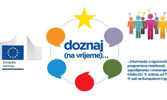 Predstavništvo Europske komisije u Hrvatskoj u suradnji s Hrvatskim zavodom za zapošljavanje/EURES-om Hrvatska u povodu Dana Europe 9. svibnja od 11.00 do 17.00 sati na Europskom trgu u Zagrebu organizira javni događaj pod nazivom Doznaj (na vrijeme)… Cilj događaja je podići svijest o važnosti informiranosti građana koji planiraju školovanje ili zapošljavanje u drugim europskim državama, te prevenirati rizike povezane s mobilnošću kao što su prijevare, trgovina ljudima, neprijavljeni rad ili gubitak prava iz područja socijalnog osiguranja. Kroz program prezentacija i u izravnom kontaktu s okupljenim predstavnicima institucija i europskih mreža posjetitelji će se upoznati s preduvjetima sigurnog kretanja na europskom tržištu i pravima koja proizlaze iz statusa građana Europske unije.