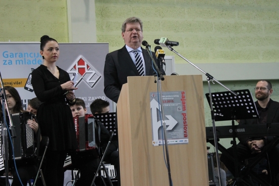 Nakon otvorenja Sajma poslova, ministar Mrsić posjetio je i Srednju školu Krapina gdje se susreo s učenicima srednjih škola na temu „Razgovori o budućnosti“, a potom je na tribini održanoj u Maloj dvorani Pučkog otvorenog učilišta u Krapini predstavio novosti vezane uz mjere poticanja zapošljavanja mladih u okviru Garancije za mlade te informacije o fiskalnim olakšicama koje poslodavci mogu koristiti prilikom zapošljavanja mladih osoba. Garancija za mlade je novi pristup u rješavanju pitanja nezaposlenosti mladih osoba, kojim se sve osobe mlađe od 30 godina nastoji što brže aktivirati na tržištu rada. Hrvatska će za navedeni program na raspolaganju imati više od 130 milijuna eura iz strukturnih fondova EU za razdoblje od 2014-2020. godine, a već su vidljivi i prvi pozitivni trendovi korištenja tih mjera te je tako u 2014. godini smanjena stopa nezaposlenosti mladih na 41,3% u odnosu na isto razdoblje 2013. godine kada je iznosila 48,6%.