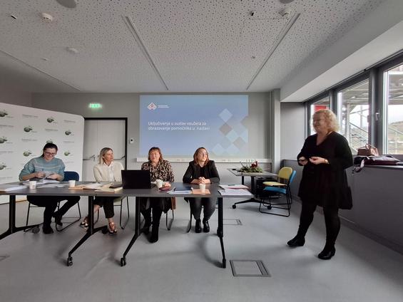 Melita Horvat-Peh iz Hrvatskog zavoda za zapošljavanje, Područni ured Krapina, predstavila je sustav vaučera za obrazovanje odraslih i istaknula specifičnosti i uvjete za podnošenje zahtjeva za financiranje programa osposobljavanja za stjecanje djelomične kvalifikacije pomoćnika u nastavi. Osnovni uvjet je da osoba trenutno radi kao pomoćnik u nastavi u školi, da ispunjava ostale uvjete za korištenje vaučera, odabere željeno učilište koje nudi odgovarajuće obrazovanje i podnese zahtjev za sufinanciranje Hrvatskom zavodu za zapošljavanje putem aplikacije Moj vaučer.