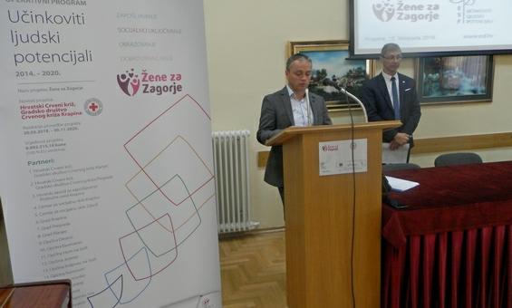 Središnji dio konferencije je započeo ravnatelj Hrvatskog Crvenog križa, Gradskog društva Crvenog križa Krapina, Davor Šimunović predstavljanjem projekta Žene za Zagorje, dosadašnjeg tijeka projektnih aktivnosti, zapošljavanja i obrazovanja žena te projektnog tima i partnera uključenih u projekt.
