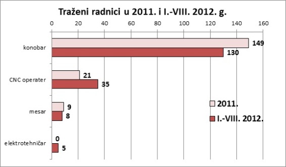 Odgovori su uglavnom u skladu sa broju zaprimljenih radnih mjesta od poslodavaca za navedena zanimanja na području Krapinsko-zagorske županije. U 2011. godini konobar je bio drugo najtraženije zanimanje (iza šivača), dok je u osam mjeseci 2012. godine konobar najtraženije zanimanje u Krapinsko-zagorskoj županiji.